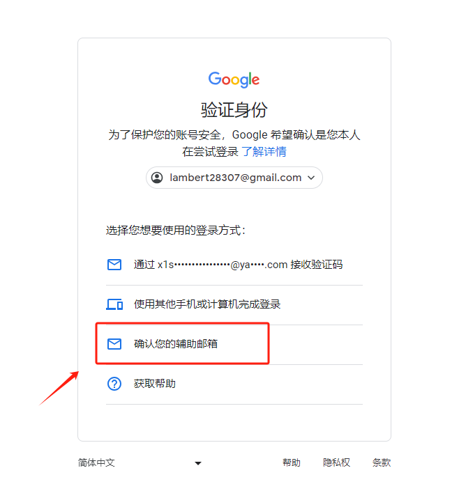 部分特殊情况会弹出辅助邮箱验证,我们要选择“确认您的辅助邮箱”